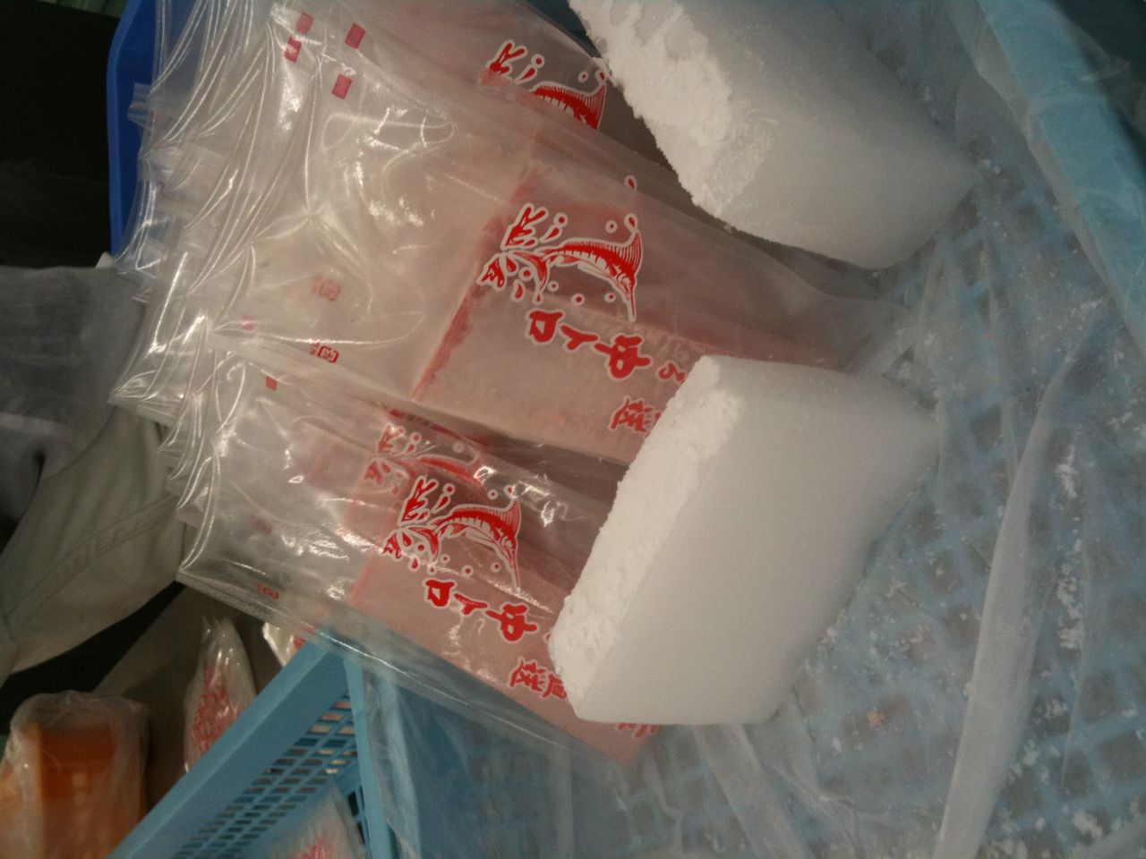 1柵ごとパック詰めにします。鮮度が落ちないようにしっかりとドライアイスで温度管理。