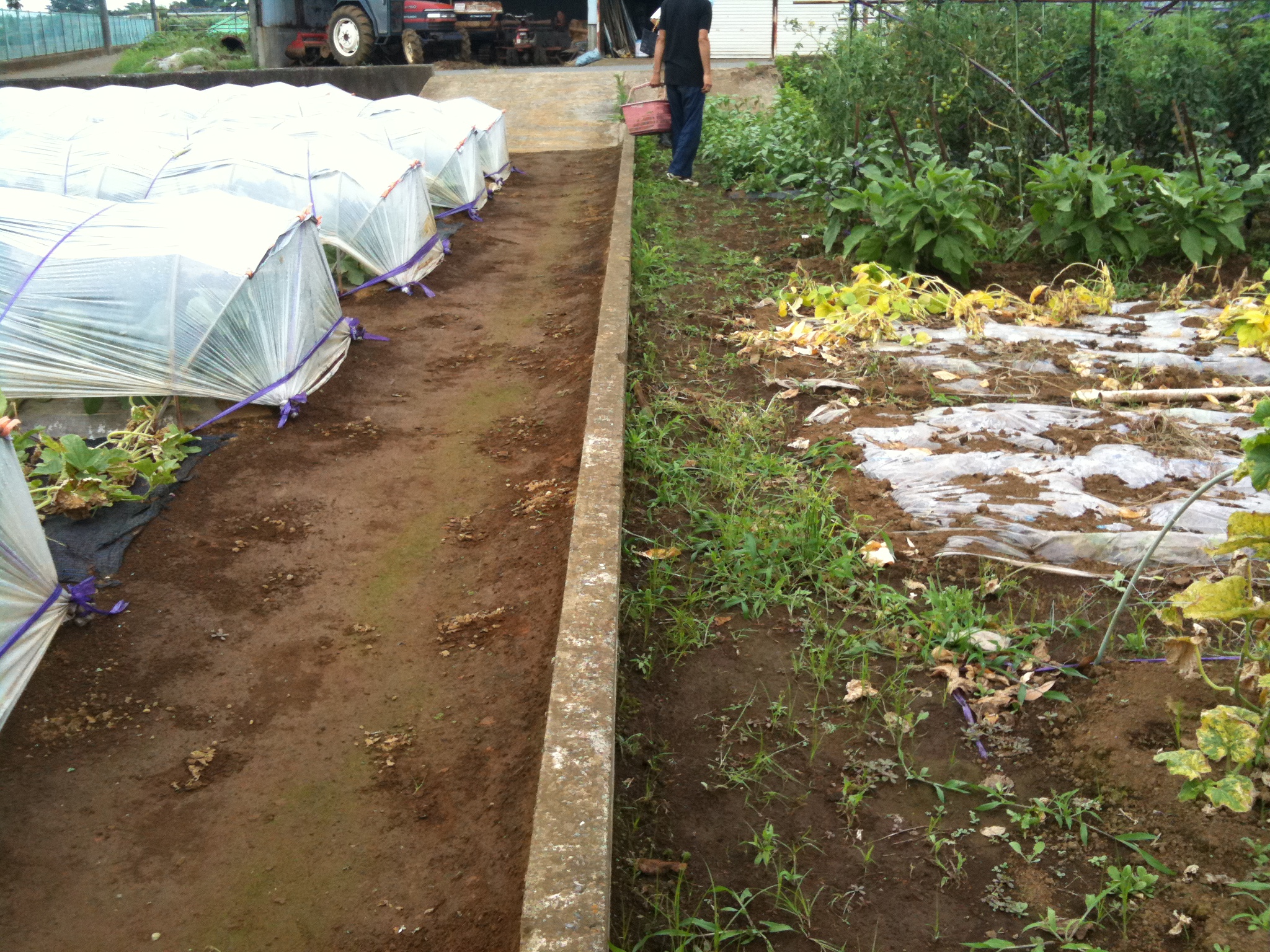 右の畑で作物はとれるが、採れる量は明らかに違う。強い生き残った作物の味は格別である。