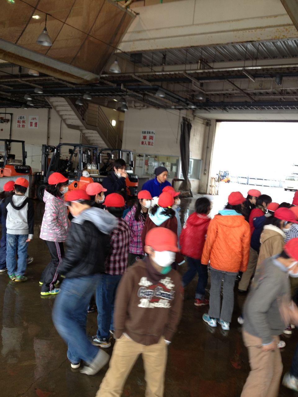 まずは市場見学。残念ながら途中の渋滞の為、市場の入札がやっている時間には間に合わず、施設の案内になりました。今回は、市場青年部の鱗会に協力もらってクラス別に施設説明。