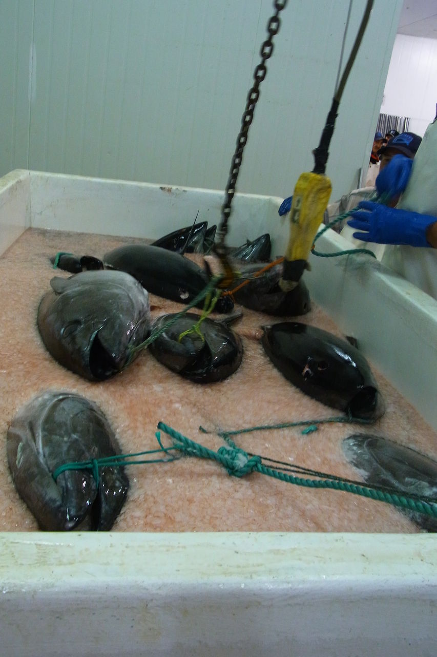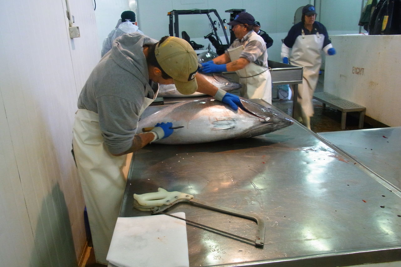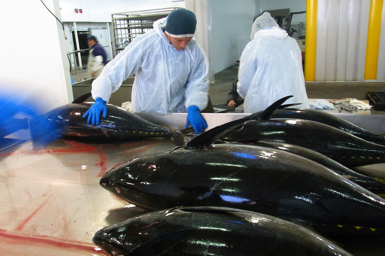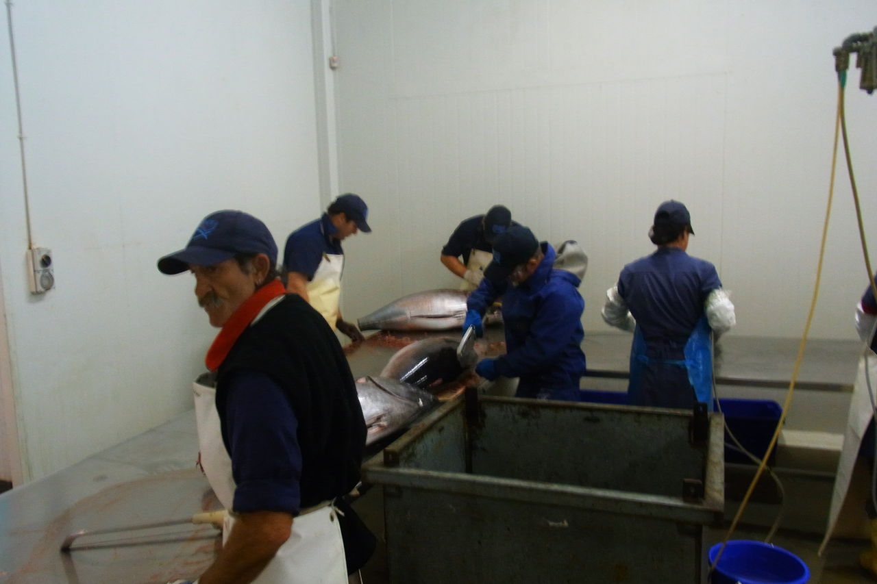 浜で水揚げされたマグロは、近くの工場に運ばれます。