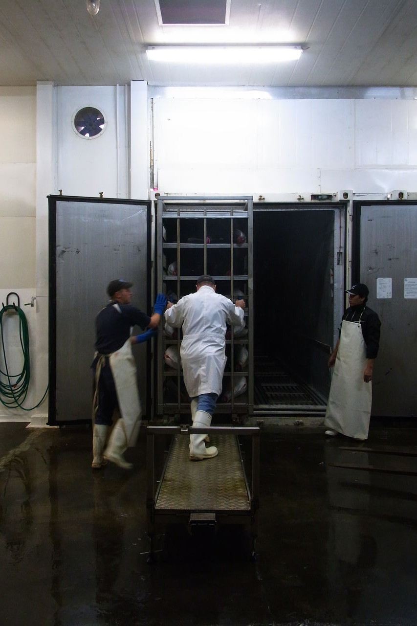 きっちりと余計なものを外され、洗浄されたマグロは急速凍結庫に入れられていくのです。。