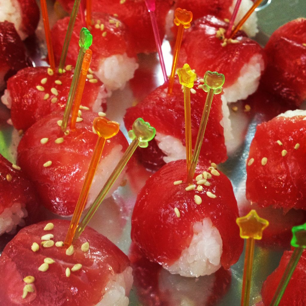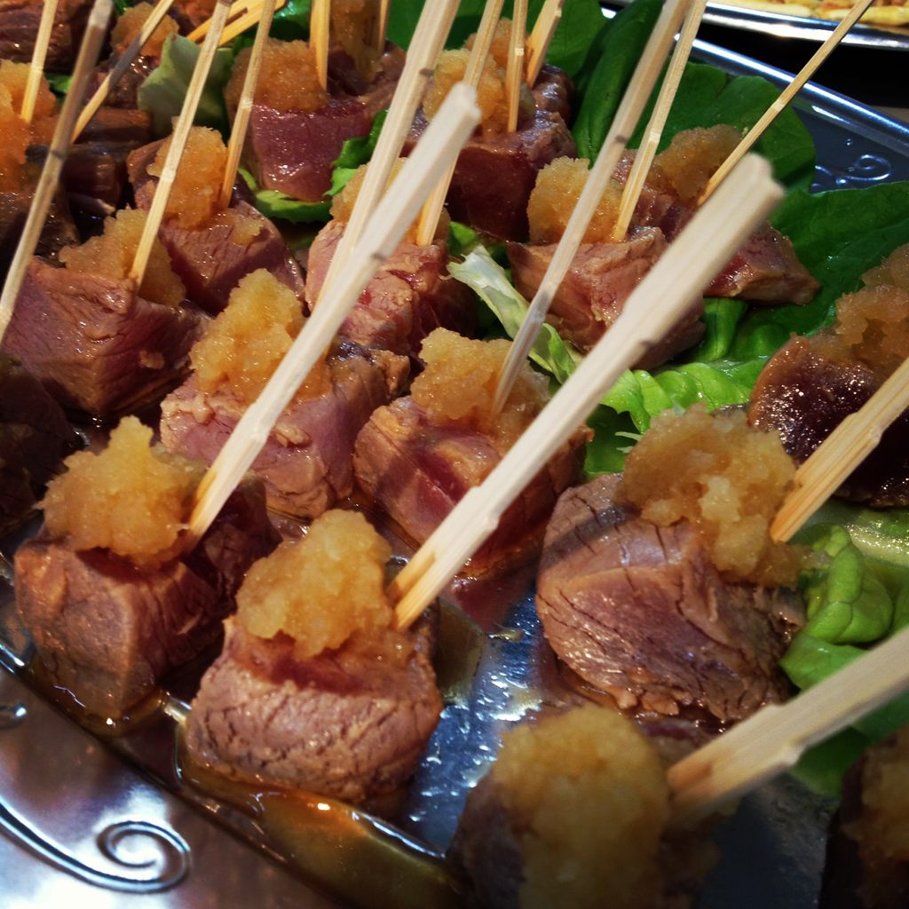 昨年、スペインのサンセバスチャンに行く機会があり本場のスペインバルのピンチョス、タパスを見てこのマグロバージョン出来ないかなってメニューを考えていました。
