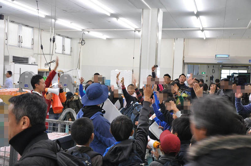 工場内でマグロの加工を見ながら色々な質問が飛び交う。皆事前に調べているのか、ものすごい質問の嵐。「ワシントン条約で、、、」「巻き網船は、、、」「はえ縄のえさは、、、」