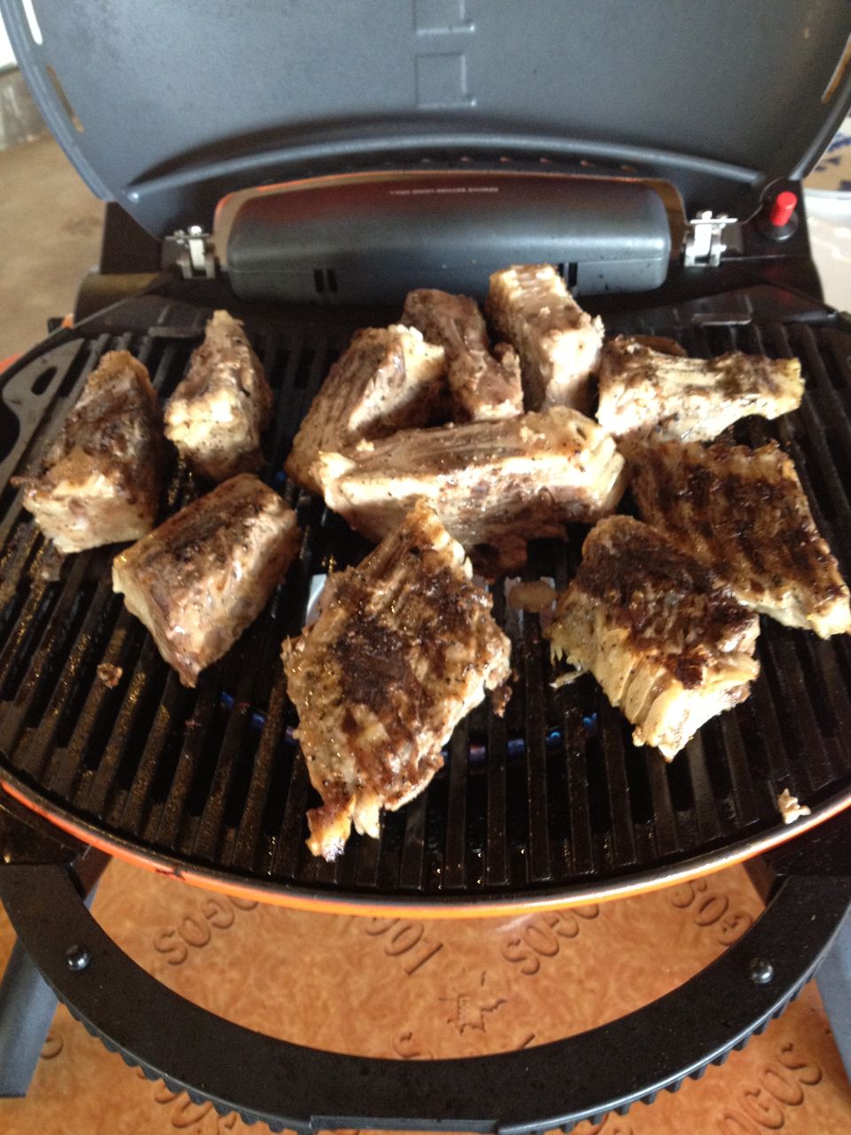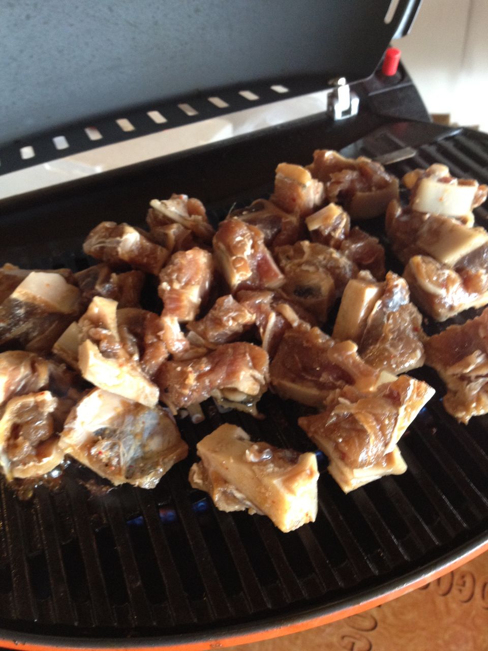 まぐろカマをぶつ切りにして自家製カルビソースで。