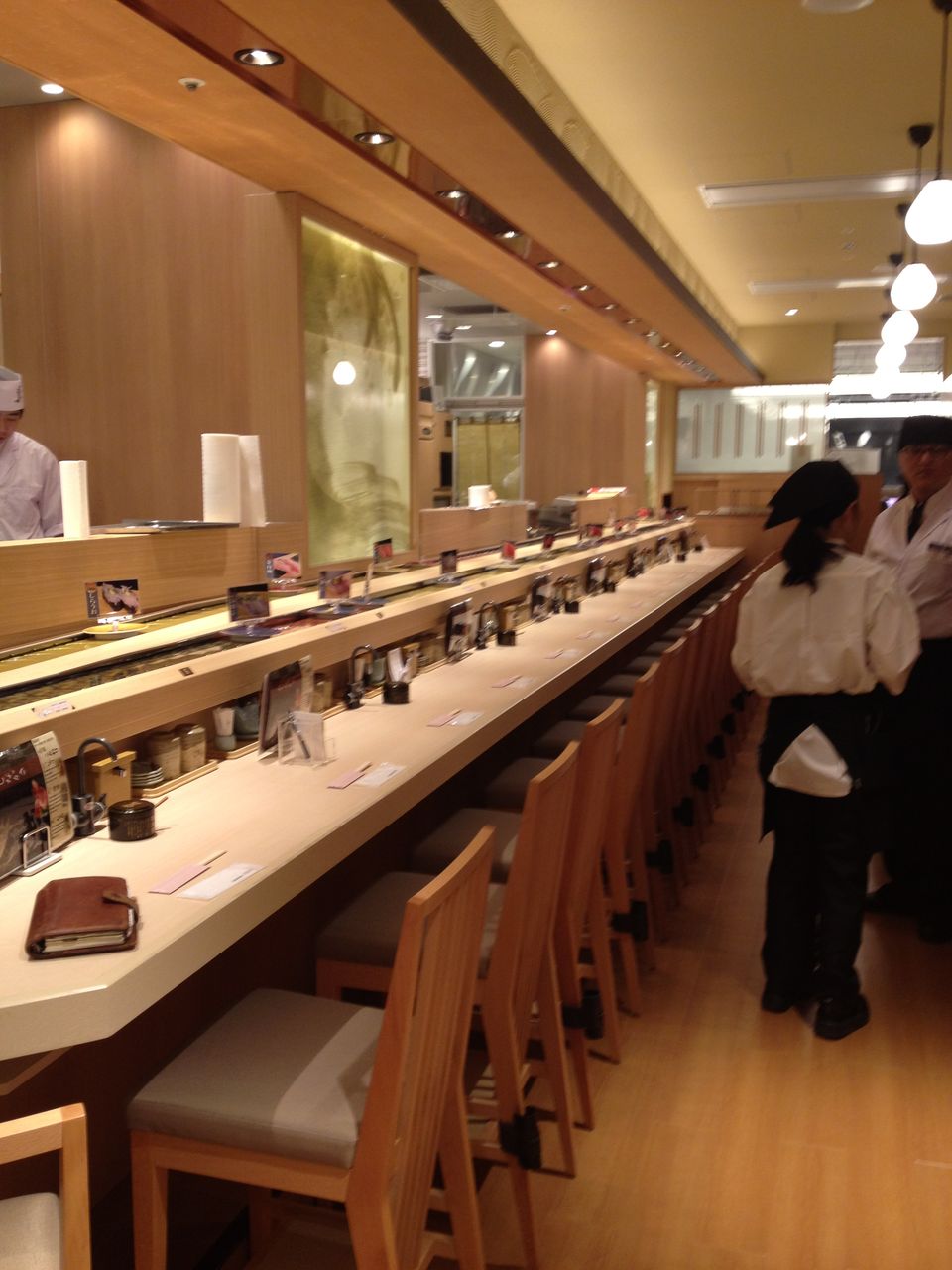 新提案の寿司が回っているカウンター席。