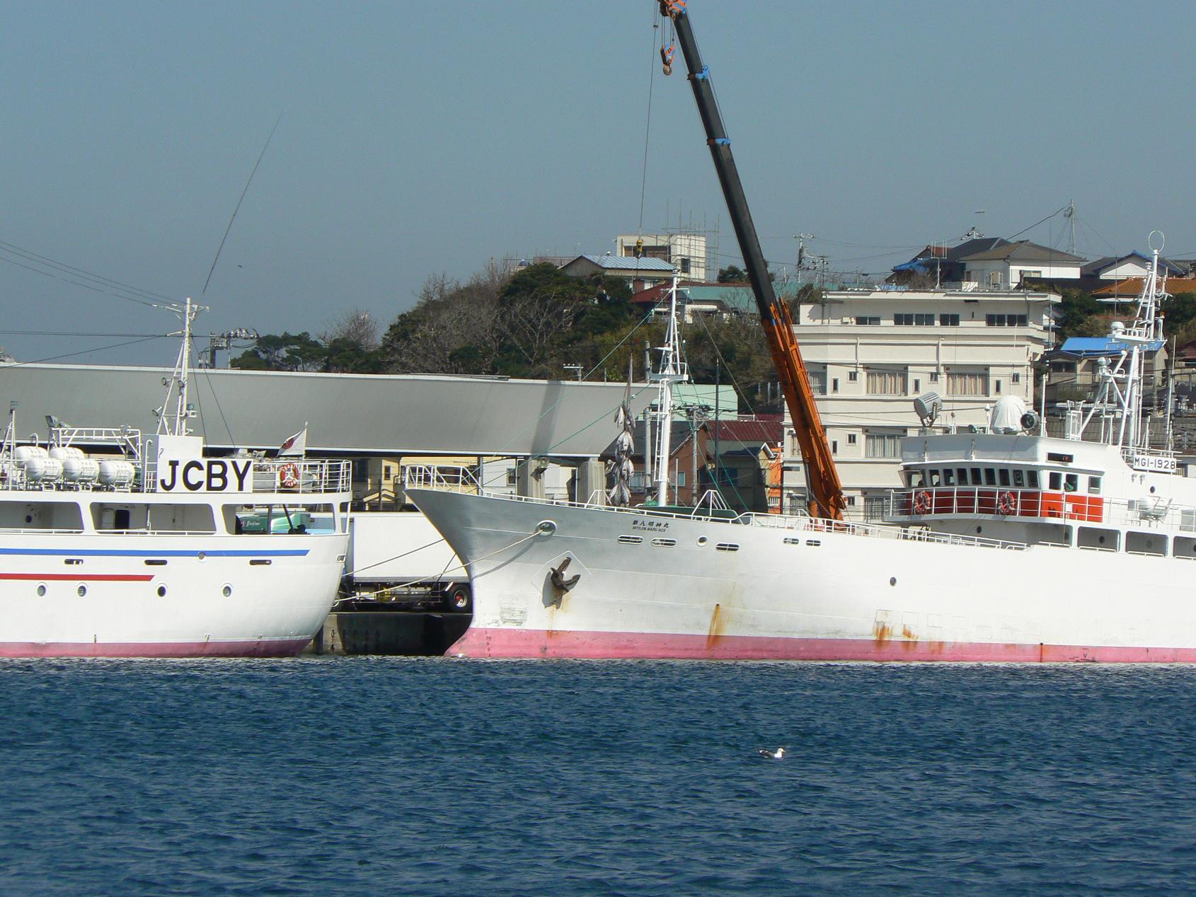 本日は三崎港でまぐろ船からの水揚が朝から行われています。