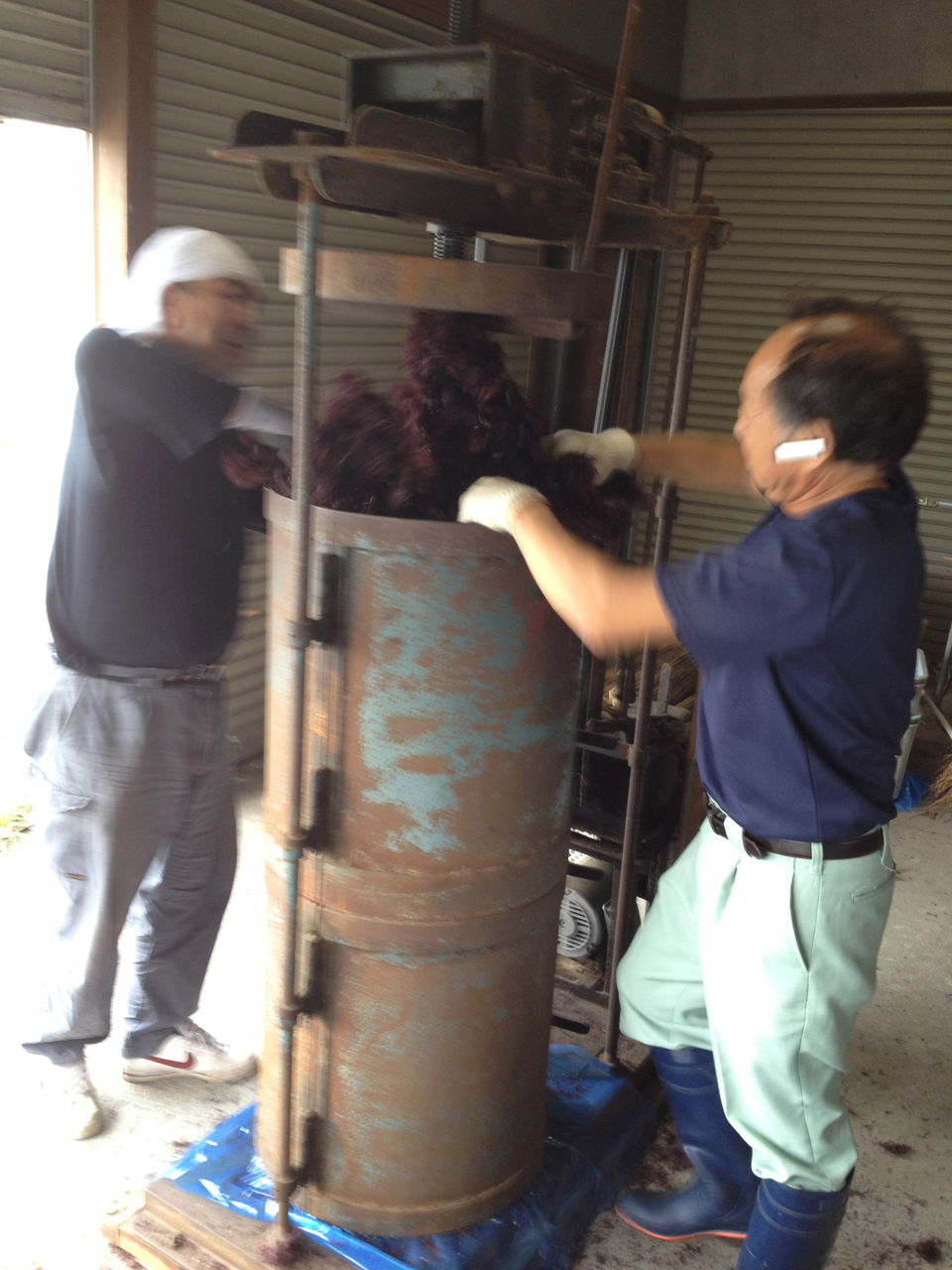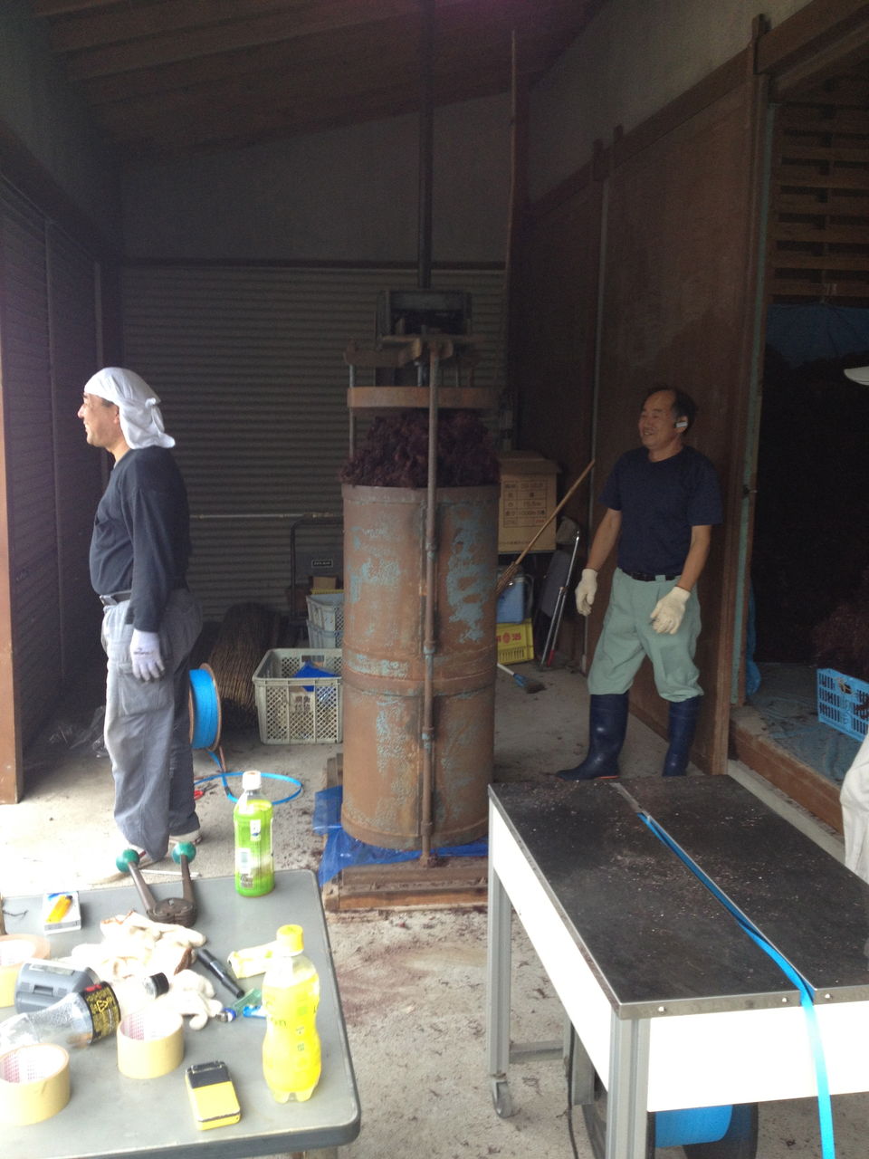 城ヶ島の漁業組合に立ち寄ったらちょうど、今年収穫したてんぐさの圧縮作業に出会った。