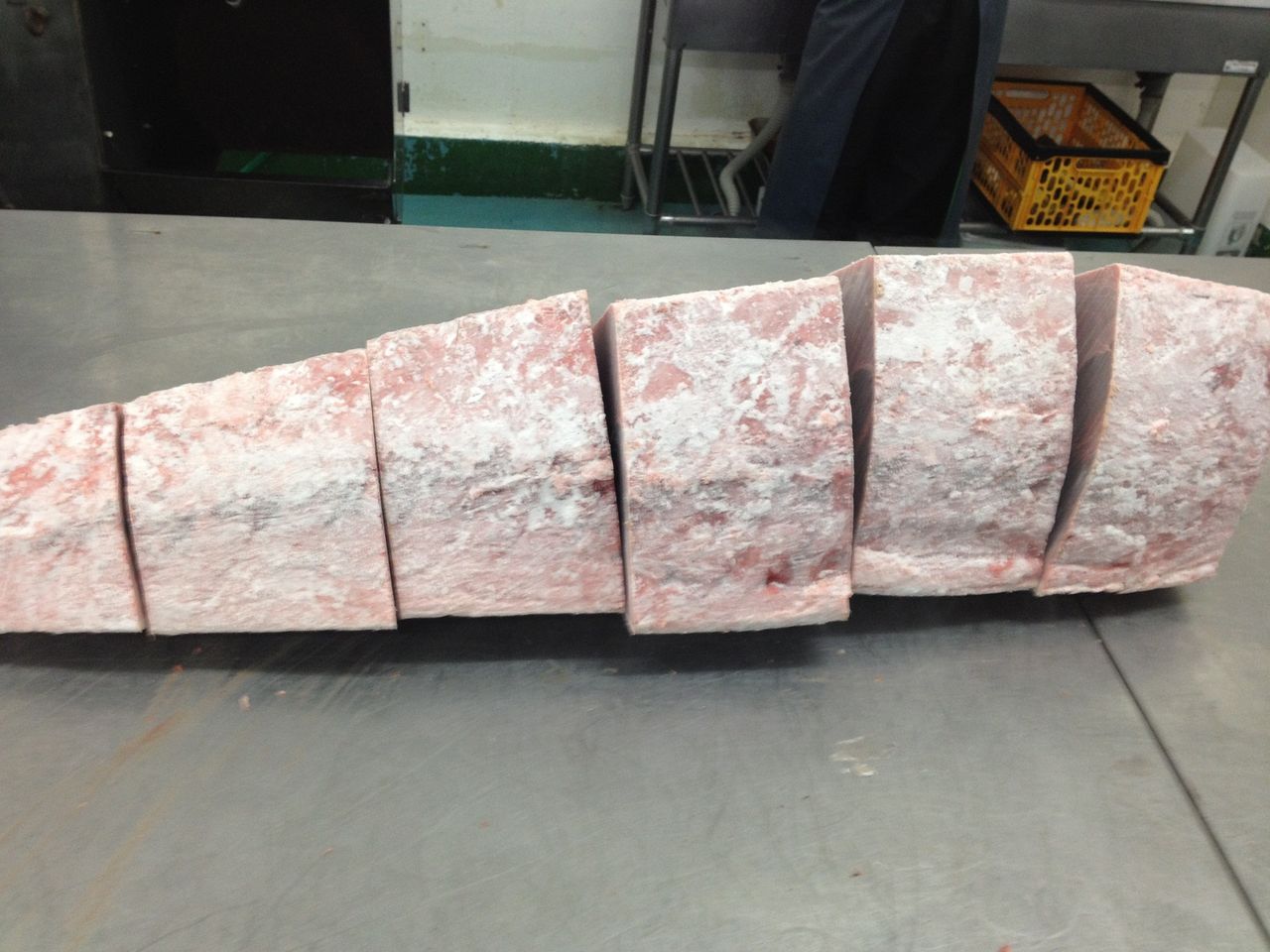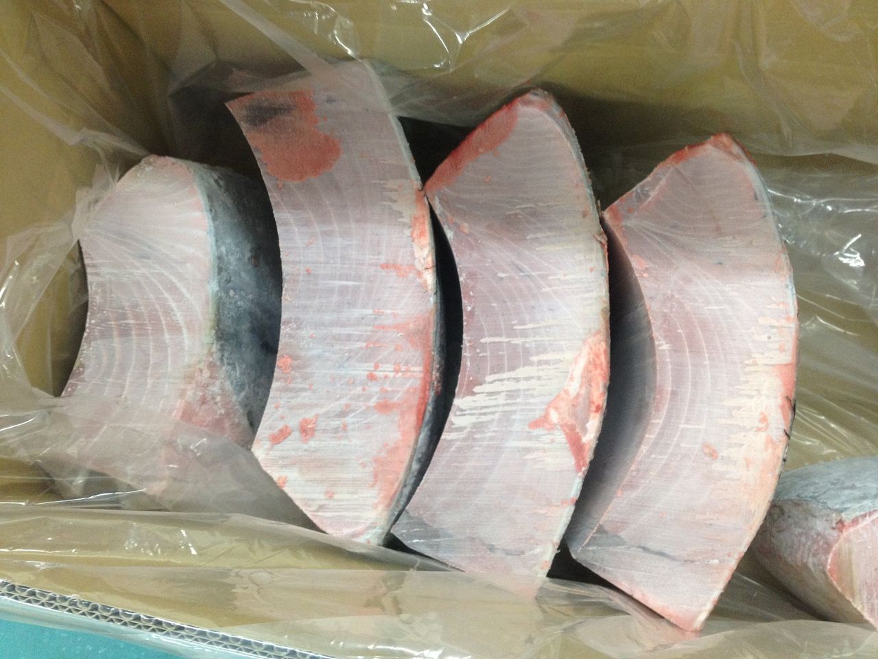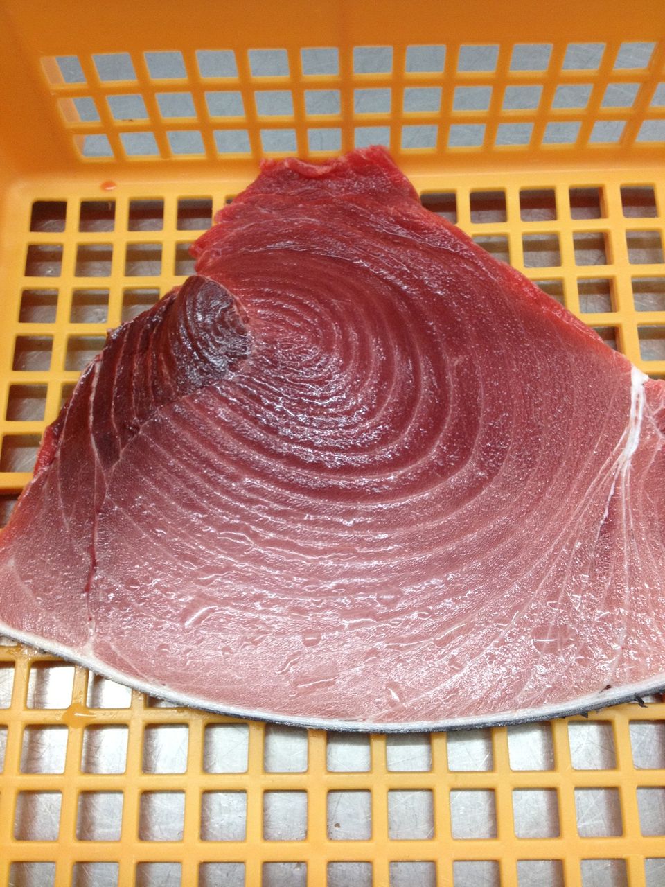 120キロのメバチマグロとロイン(頭を外して1/4の状態)で50キロの本まぐろ。