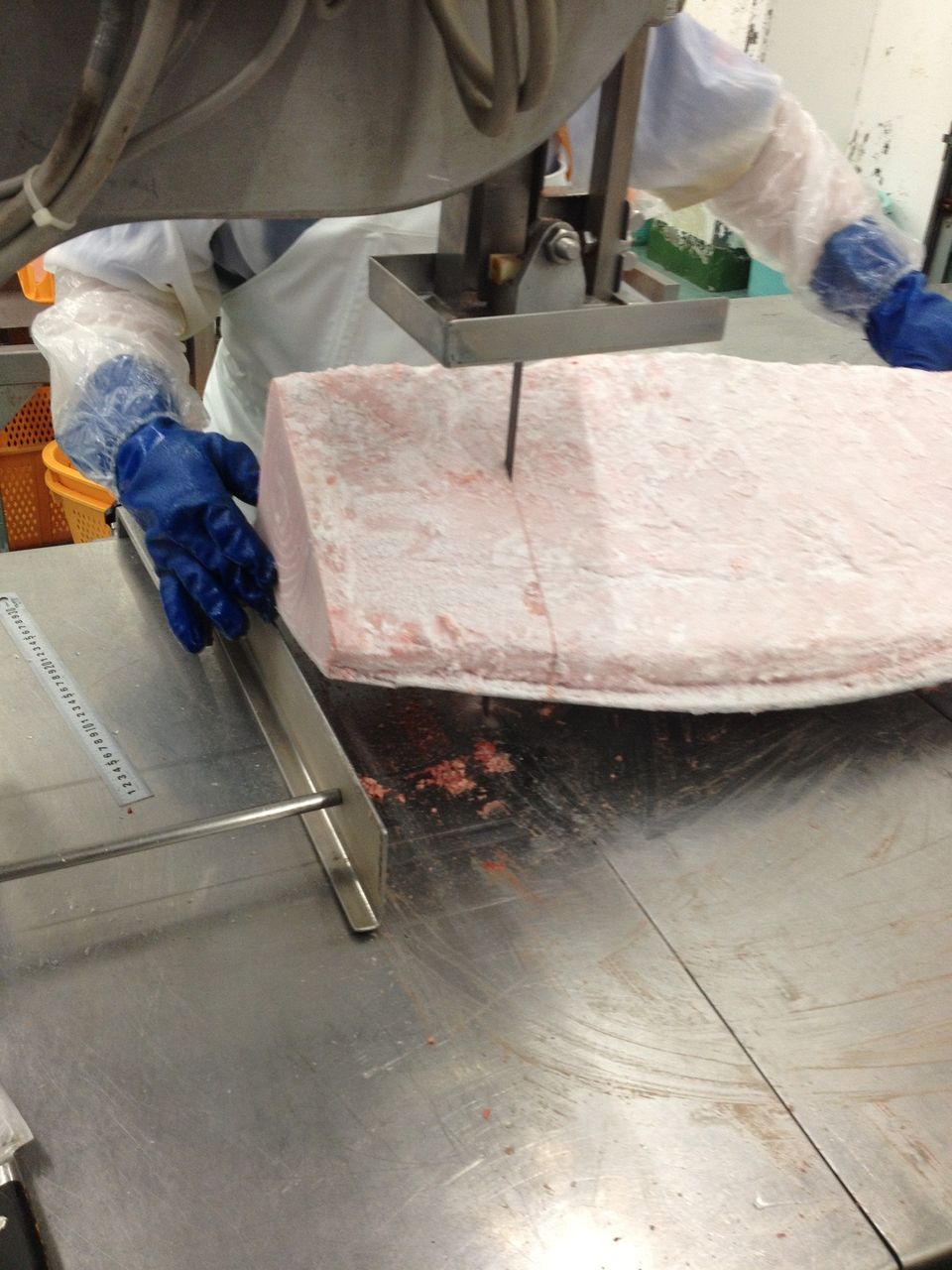 この目メバチマグロもデカイ方だけど頭なしで同じ大きさだから本まぐろの大きさが分かる。