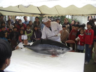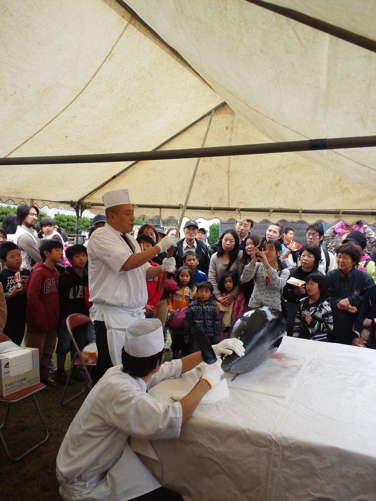 にて年に一回の『ふれあいフェスタ』にてマグロ解体ショーとまぐろ丼の販売をさせていただきました。