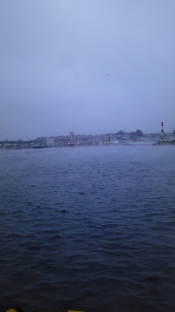 そして加工場がある城ヶ島より三崎港を眺めると写真にあるように海面から湯気が、、、