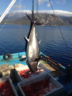 地中海は獲るマグロ自体がでかい!!なので水揚げするマグロもでかい。